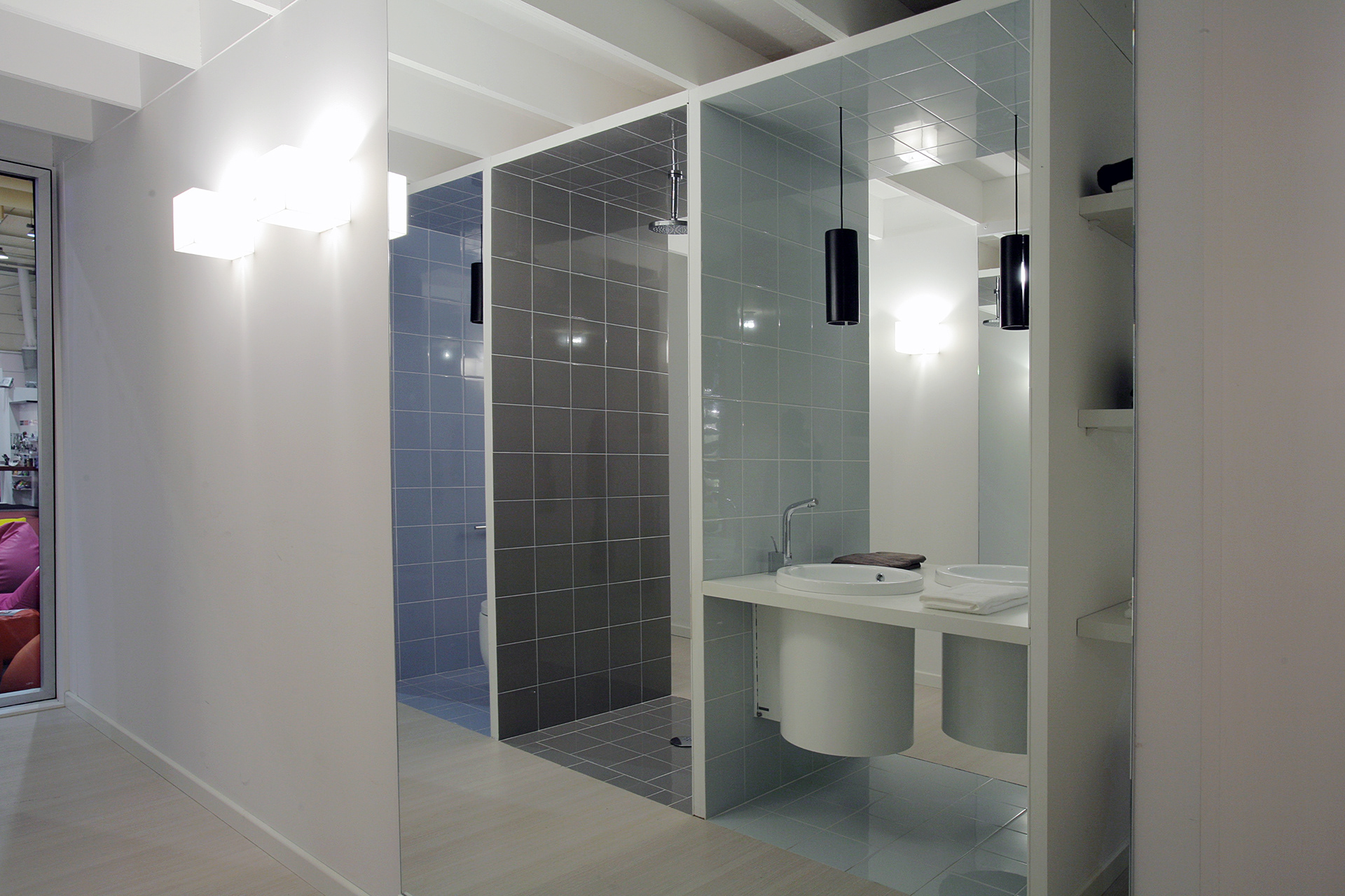 A bathroom where the washbasin, toilet and shower areas were divided in order to increase privacy. A large and well organized closet was part of the pro